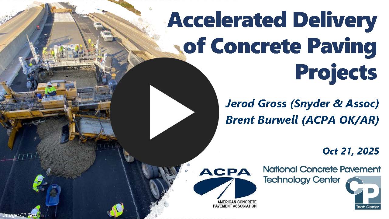 ![]() | Accelerated Delivery of Concrete Paving Projects | 👤 Jerod Gross 👤 Brent Burwell | Concrete Pavement Technology Tuesday | 2025 | |