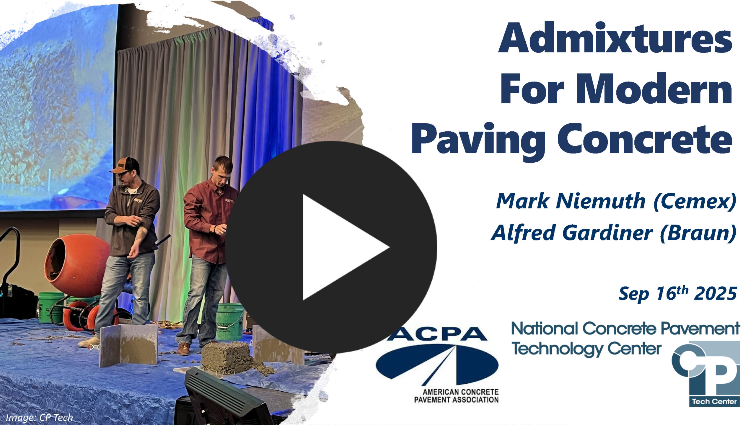 ![]() | Admixtures for Modern Paving Concrete | 👤 Mark Niemuth 👤 Alfred Gardiner | Concrete Pavement Technology Tuesday | 2025 | |